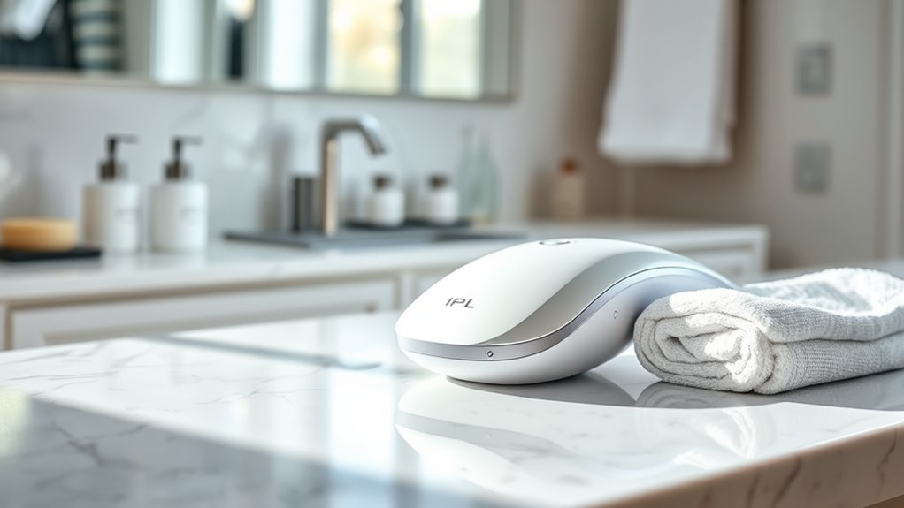 Proper preparation of your skin is also essential. Shave the area you plan to treat beforehand; this ensures the light targets the hair follicle directly and reduces the risk of burns. Avoid applying creams, lotions, or oils before treatment—these can interfere with the light’s effectiveness. Make sure your skin is clean, dry, and free of any products that could block the light or cause reactions. Additionally, understanding the technology behind IPL devices can help you better operate and troubleshoot them effectively.